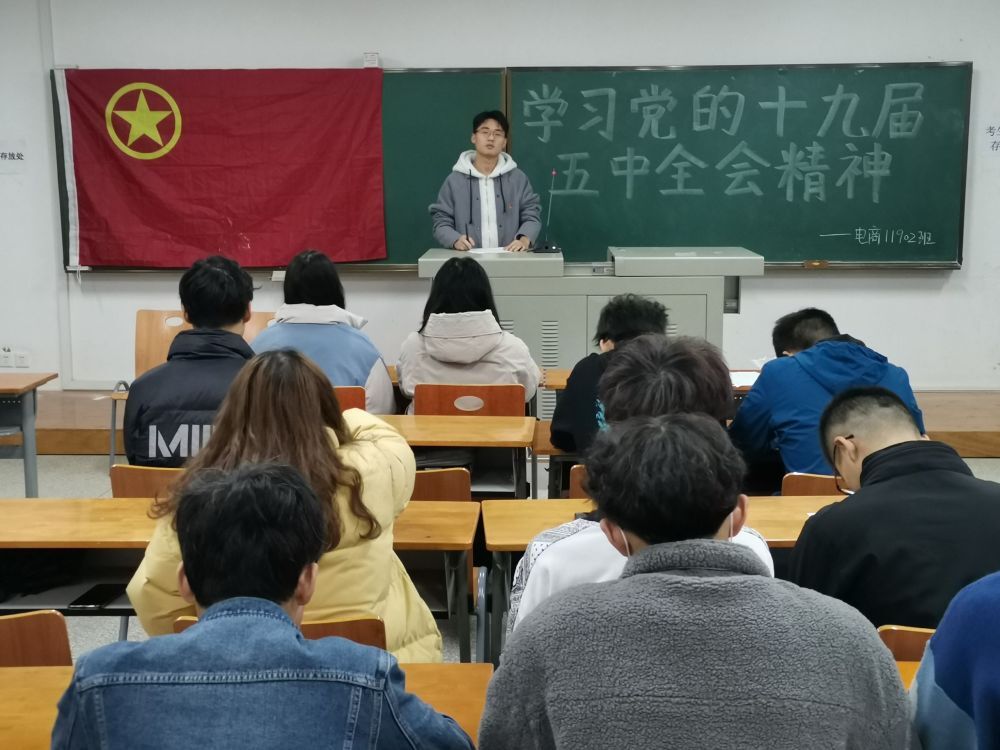 团日活动伊始,各班团支书为同学们领学,学习党的第十九届五中全会《公报》《中共中央关于制定国民经济和社会发展第十四个五年规划和二〇三五年远景目标的建议》以及习近平就《建议(讨论稿)》向全会作的说明,分别列出了第十九届五中全会的要点。党的十九届五中全会是我们党在全面建成小康社会胜利在望、全面建设社会主义现代化国家新征程即将开启的重要历史时刻,是在我国将进入新发展阶段、实现中华民族伟大复兴正处于关键时期,召开的一次具有全局性、历史性意义的会议。作为新时代青年,我们应该认真学习领会十九届五中全会的精神,这让我们对中国未来的发展有了更清晰深刻的认识,并对我国伟大复兴的中国梦更加充满信心。