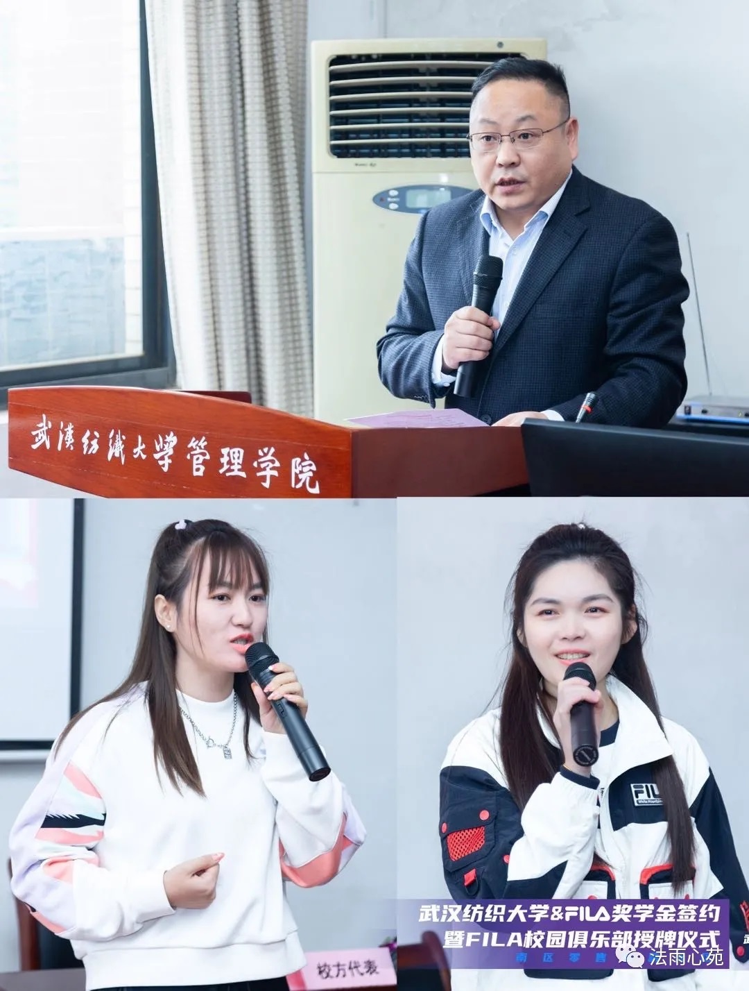 集团人才招聘处副处长熊昌盛致辞,对FILA校园俱乐部的运营寄予厚望,同时对FILA的爱心回馈表示感谢,鼓励同学们珍惜公司和企业搭建的实践平台,提前与职场接轨,加强自我认知,做好生涯规划,行稳致远。