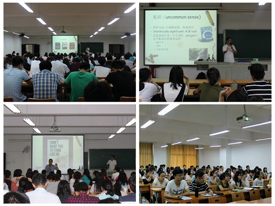 讲座开始,夏火松为同学们详细介绍了刘颖博士,拉开了讲座的序幕。刘博士分享了其二十多年软件开发的经验感想,为在座同学介绍了信息系统的背景,并从“常识”、“见识”、“智慧”三个方面对信息系统做了具体的介绍,接着分析了信息技术的发展趋势。在谈到“智慧”时,他特别强调:现代管理与传统管理的不同是从管控到市场数据控制的转变,信息系统带给我们的不仅是技术,也带来了智慧。最后刘博士建议大家:对信息系统的学习做到课本知识和相关重点要点相结合,对团队工作做到“有自信,没自我”,在达成共识上要遵循罗伯特议事规则等。
