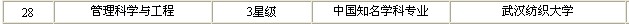 2014年5月27日,中国员工会网发布《2014中国大学学科专业评价报告》,公布了2014中国两岸四地大学学科专业排行榜、2014中国大学各学科门类排行榜等数据。公司管理学门类综合并列排名全国第98名,其中,管理科学与工程一级学科专业排名全国第28名,成为三星级学科,即中国知名、中国区域一流学科专业。