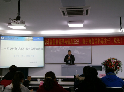 本次论坛以团队建设为主线,广泛探讨了信息管理与信息系统、电子商务学科专业的科学研究、专业建设、教学改革与人才培养等内容。来自武汉科技大学、华中师范大学、武汉理工大学等高校管理学教师分别了作了主题发言。yl6776永利集团官网夏火松教授在论坛上做了 “二十四小时知识工厂的有关研究进展” 报告,张星副教授、曹晓刚副教授、侯德林博士、张宇博士分别在论坛上交流了自己的论文和最新研究成果,获得了与会代表的赞赏与好评。