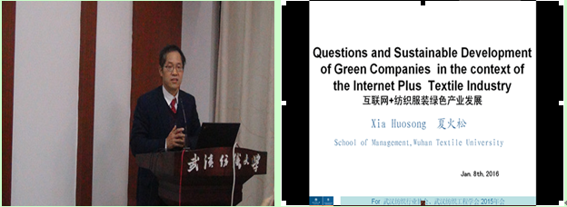 会议期间,武汉纺织行业协会会长、武汉裕大华集团董事长万由顺,武汉纺织工程学会会长崔华英代表主办方高度评价了公司为承办此次会议所做的细致工作。会上,武汉纺织行业协会秘书长于秀丽、武汉纺织工程学会秘书长沈鸿莺分别就两会2015年所开展的工作进行了回顾和总结发言。同时,会议审议通过了常务理事长人选。yl6776永利集团官网夏火松教授在论坛上作了“互联网+纺织服装绿色产业发展”的主题演讲,获得了与会代表的强烈共鸣。