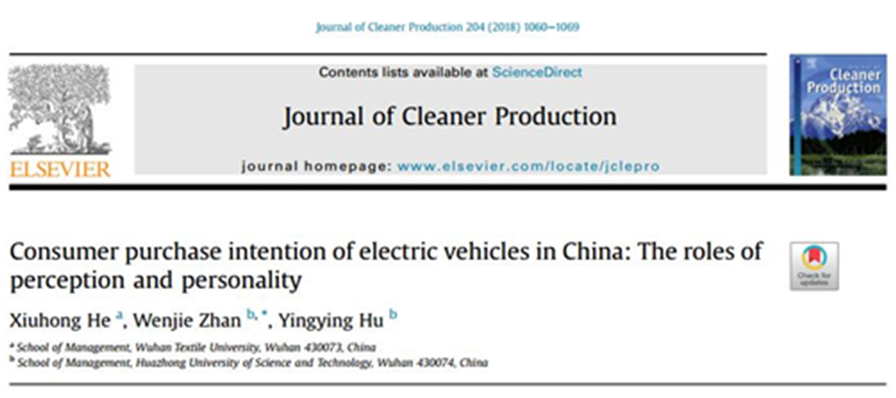 yl6776永利集团官网新进博士何秀红在中科院SCI期刊分区( 2018年最新版本)1区《Journal of Cleaner Production》(If=5.651)期刊上发表论文 《Consumer purchase intention of electric vehicles in China: The roles of perception and personality》。