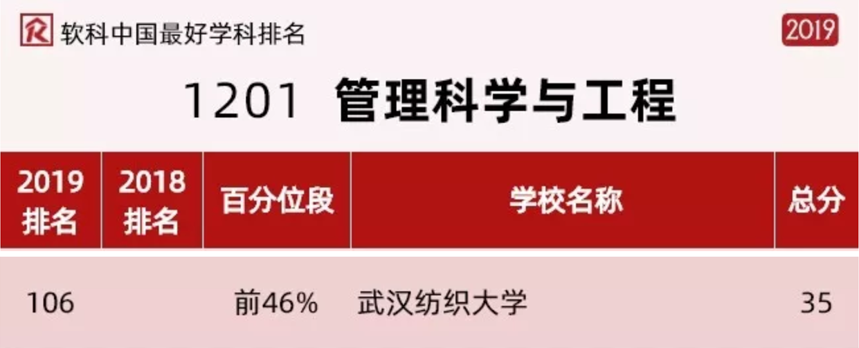 近日,2019软科中国最好学科排名正式发布,2个学科上榜。其中,工商管理学科在157所上榜高校中位列第77,在湖北省属高校中位列第一,也是纺大首个进入前25%的学科;管理科学与工程学科在116所上榜高校中位列第106,入围全国排名前46%序列,在湖北省属高校中位列第二。