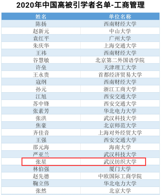 4月22日,全球性信息分析公司爱思唯尔(Elsevier)正式发布了2020年中国高被引学者(Highly Cited Chinese Researchers)榜单,yl6776永利集团官网张星教授作为工商管理学科学者成功入选。据了解,在2020年管理学科大类中,共2所湖北省属高校3位学者入选。