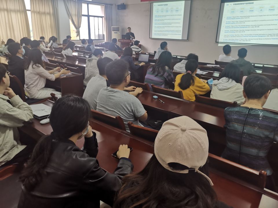 报告通过传统研究和创新研究的对比,介绍了不对称信息下的供应链管理。关旭教授表示,企业可以采取更加直接的信息策略,例如产品质量披露、需求信息获取和供应链信息共享等,以主动消除不对称信息。此外,关旭教授以自己在Production and Operations Management上发表的6篇学术论文为例,分享了高水平论文写作的技巧和要领,并结合实际为研究生提高学术能力提供了针对性的建议。