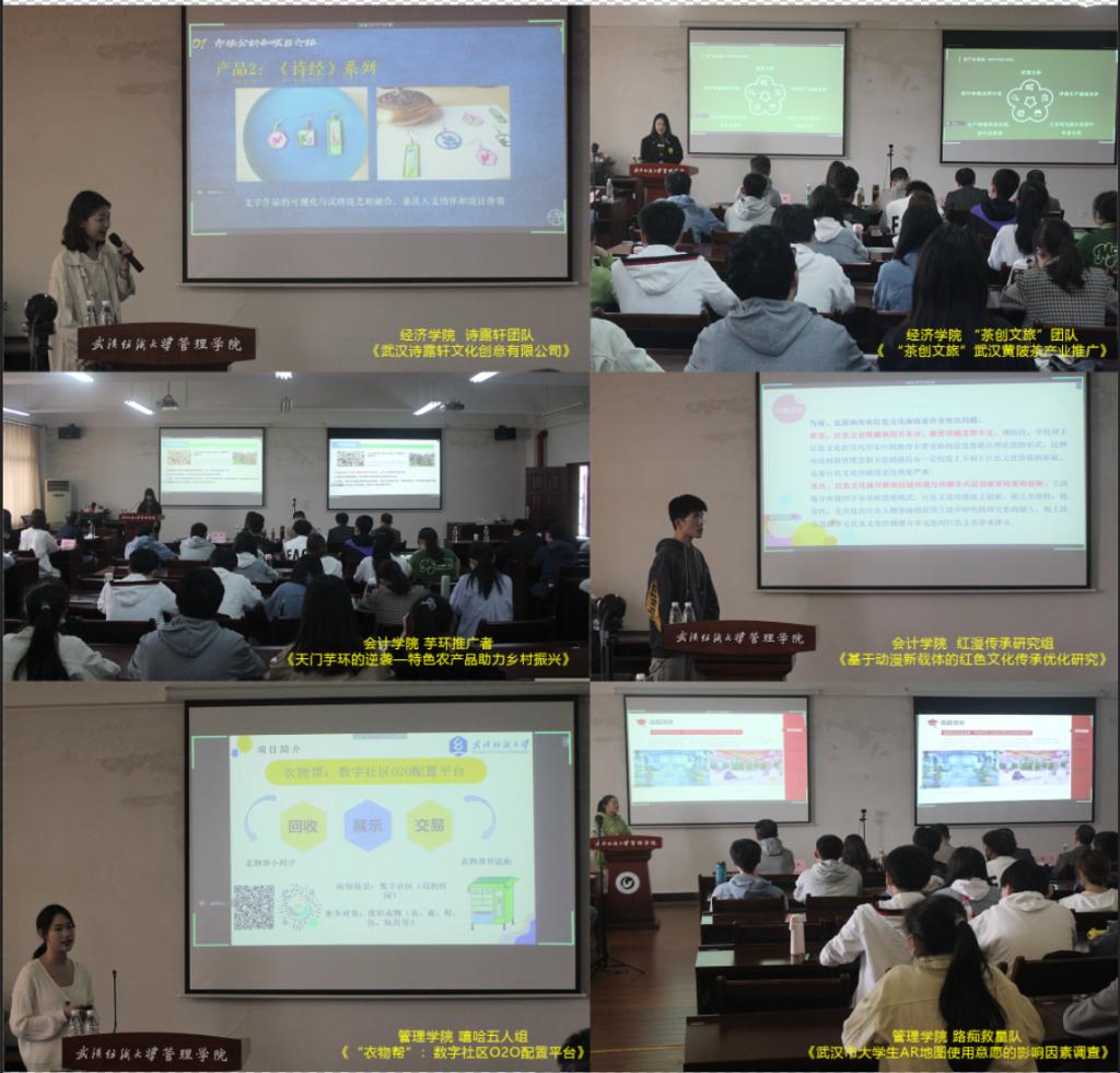 教务处(创新创业公司)与经济、会计、管理等公司有关领导、评审专家齐聚一堂,共同见证6个本科生团队进行学术汇报。精彩的交流碰撞吸引了近400名本科生线上线下观摩学习。