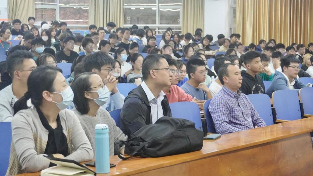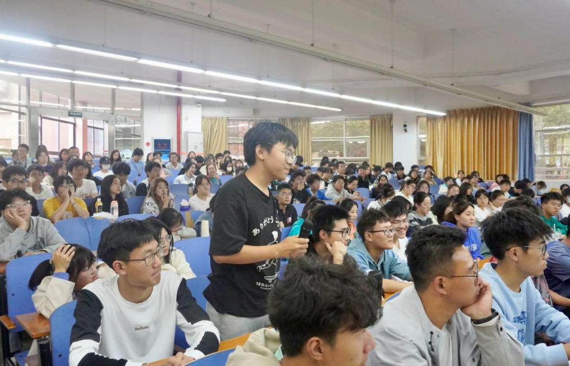 最后,吴金红对同学们的困惑进行了现场答疑。大家提出了许多自己感兴趣的问题,例如大学学习与高中学习有哪些不同,如何平衡课外活动与学习的关系等。吴金红一一耐心解答,他建议同学们要结合自身情况和对未来目标的清晰认知,选择属于自己的最佳路线。大学绝不可以“躺平”,要明确自己的人生目标,并朝着认定的方向不断努力。